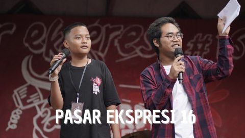 Pada gelaran yang ke-16 yang ini, panitia Pasar Ekspresi mengangkat tema ‘Merdeka Berekspresi’. Entah kebetulan atau memang disengaja, penggunaan tema merdeka berekspresi ini bertepatan dengan bulan kemerdekaan Republik Indonesia. Pelaksanaannya pun hanya selisih satu hari saja dengan peringatan hari kemerdekaan. Menurut pengakuan Sena, ketua Pasar Ekspresi#16, awalnya ada 3 usulan tema. Panitia lebih memilih tema ‘Merdeka Berekspresi’ memang karena momen yang pas dengan waktu pelaksanaanya di bulan Agustus, bulan kemerdekaan Republik Indonesia. Namun, menurut saya itu bukan hal yang terlalu penting untuk dibicarakan. Yang lebih penting adalah substansi dari tema ‘Merdeka Berekspresi’ itu sendiri. Alasan di atas akan menjadi tidak relevan lagi ketika tema ‘Merdeka Berekspresi’ ini benar-benar terwujud dalam gelaran Pasar Ekspresi#16. Bahkan, ketika tidak digelar dalam suasana perayaan kemerdekaan Republik Indonesia sekali pun.